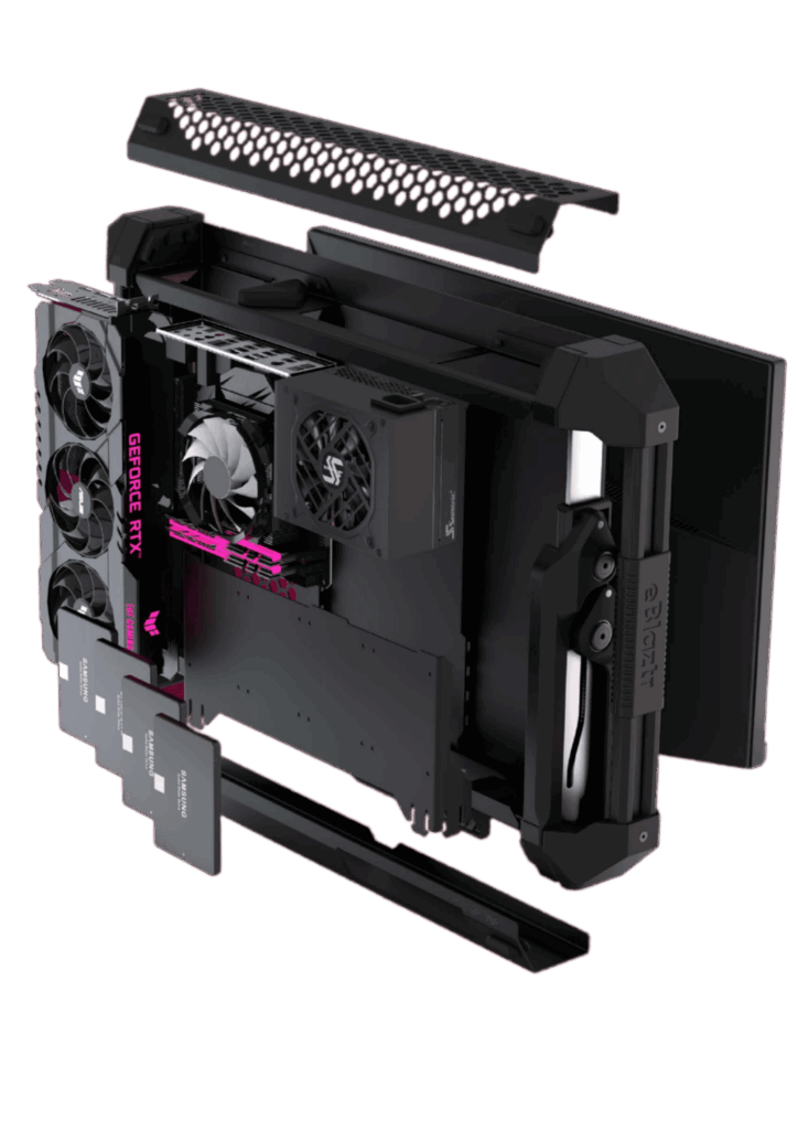 Gaming laptops throttle, overheat, and die young. Desktops are powerful but chained to a desk. eBlaztr solves this: portable, desktop-class power with full-sized GPUs and swappable parts.