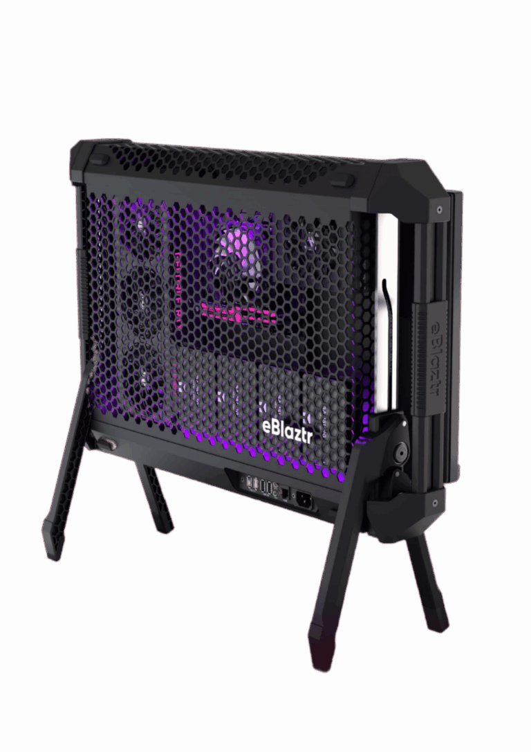 Engineered for rapid deployment, eBlaztr combines desktop-grade power with a patented leg system that transforms setup from minutes to seconds.